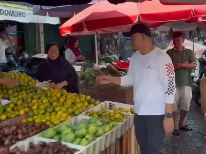 Lubuklinggau,H. Rachmat Hidayat (Yoppy Karim) Bakal Calon Wali Kota Lubuk Linggau melakukan blusukan ke Pasar Inpres Lubuk Linggau, Minggu (25/8/2024).