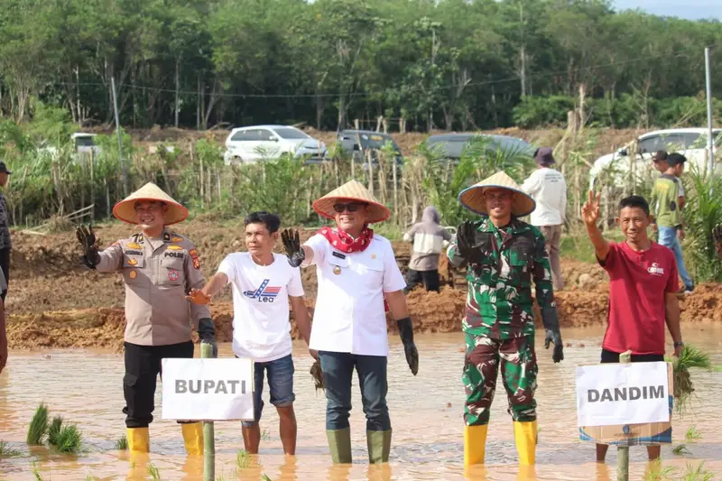Empat Lawang, – Bupati Empat Lawang, H. Joncik Muhammad, mengikuti kegiatan Tanam Perdana Cetak Sawah...