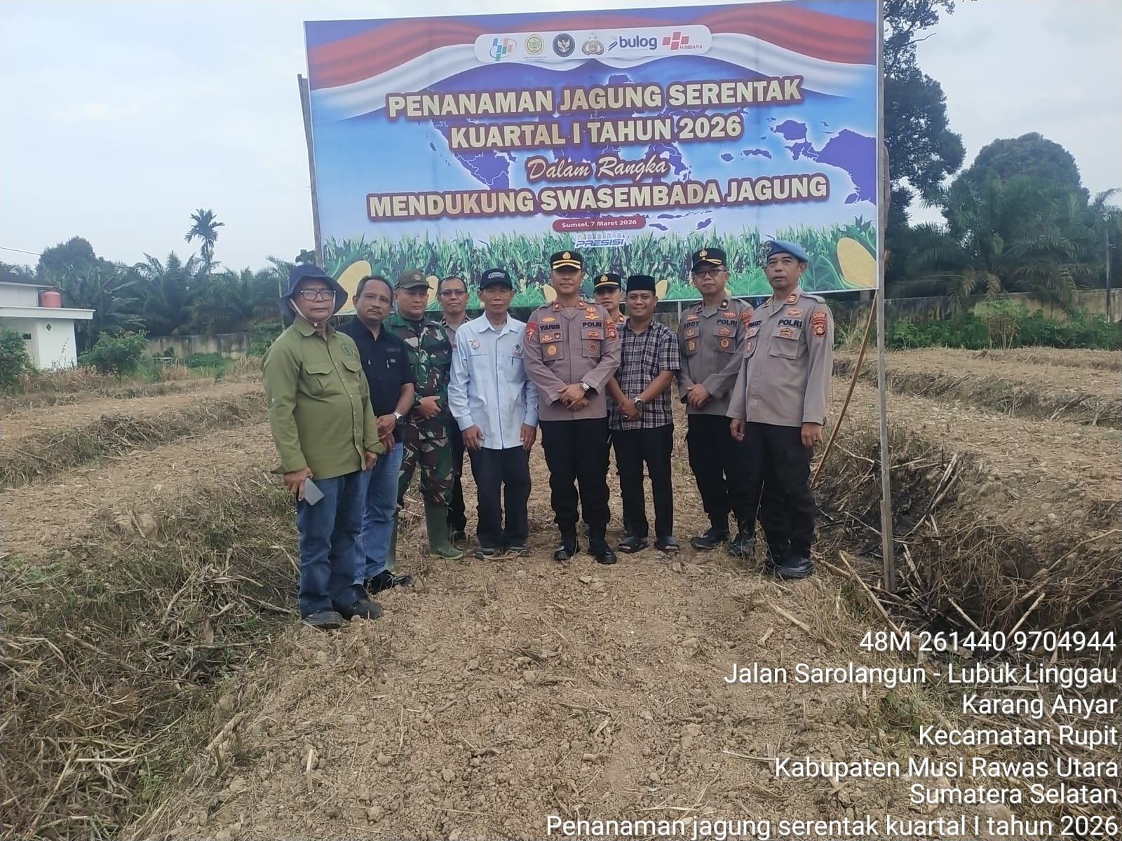 Muratara – Dalam upaya mendukung program swasembada pangan, Polres Muratara bersama Dinas Pertanian Kabupaten Musi Rawas Utara melaksanakan kegiatan penanaman jagung serentak Kuartal I Tahun 2026, Sabtu (7-3-2026).
